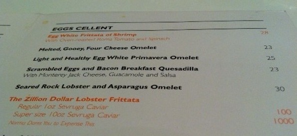 Norma’s is a NYC classic, James Beard award winning breakfast joint inside the Le Parker Meridien. With choices like Hot Chestnut Pancakes Topped with Candied Chestnuts and Brown Sugar Sauce or Mango-Papaya Brown Butter Cinnamon Crêpes, Foie Gras Brioche French Toast With Asparagus and Mushrooms or the James Beard Award Winning Potato Pancakes With Homemade Cranberry Apple Sauce and Sweet Carrot Payasam, I decided to go for the Lox & Lox of Bagels piled high and topped with Caviar. The breakfast started with a complimentary smoothie – today’s smoothie was a blueberry mango smooth that was very refreshing on a hot New York morning (at 9:30am, the thermometer was already reading 90!). The Lox & Bagels lived up to their name and came piled high topped with a massive amount of caviar. A bagel was sliced into thirds, toasted and topped with cream cheese and fresh dill. There was a cucumber in the center of the bagel and mounds and mounds of lox layered throughout. The dish was garnished with fresh red onion and capers (I got mine sans tomato!) There’s no way to eat this without making a mess. But man, it was fun trying. The lox was perfectly sliced and the three types of caviar made a great topping. The amount of food was so enormous that I had plenty to take home for a late lunch! Norma’s is well known for its signature The Zillion Dollar Lobster Frittata with1oz of Sevruga Caviar for $100 or 10oz of Sevruga Caviar for $1000 – yep, a Lobster Frittata with Sevruga Caviar for a grand! No one ordered it while I was there today. Norma’s isn’t going to become your daily breakfast joint – it’s way too pricey – but an amazing Sunday brunch or special occasion spot for breakfast lovers! You can bet next time I’m back in NYC I’ll swing by Norma’s. Tip – reservations are a must! There’s a line every day.